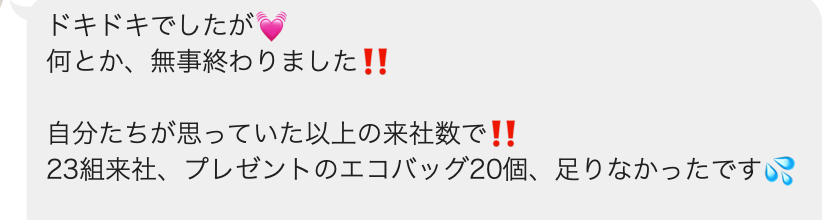 「社長とも、イベントをやって良かったと話しています」とのこと。